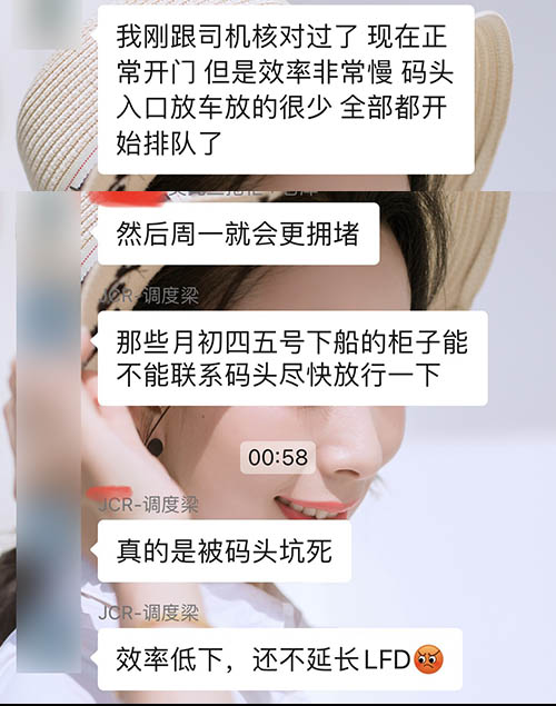 美國(guó)最新消息:由于勞資糾紛,美國(guó)加州奧克蘭SSA、ETS、TRACKPAC三大碼頭工人正在罷工。碼頭關(guān)閉,無(wú)法進(jìn)行預(yù)約提柜業(yè)務(wù)。去碼頭路上的拖車一路望不到盡頭,全部拖車都在排隊(duì)進(jìn)不去碼頭。我司有拖車司機(jī)表示從中午到晚上一直在原地沒(méi)有動(dòng)過(guò)。