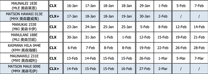 美森2023年中國(guó)農(nóng)歷新年船期安排